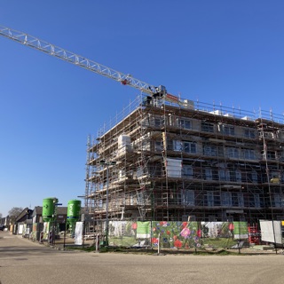 Aan de oostkant van Druten, tussen de Jan van Galenstraat, Karel Doormanstraat en De Ruijterstraat, bouwen we samen met Van de Klok 40 levensloopgeschikte en sociale huurappartementen. Bedoeld voor kleine huishoudens. Op donderdag 5 maart 2026  vierden we, mét een fantastisch lentezonnetje, het hoogste punt. Een mijlpaal waar we graag bij stil stonden. We trakteerden de vakmensen van Van de Klok op een frietje.
